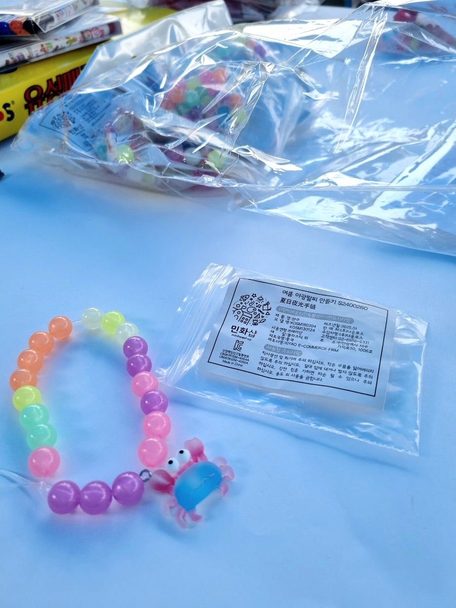귀여운 꽃게 캐릭터가 들어있는 야광 팔찌.