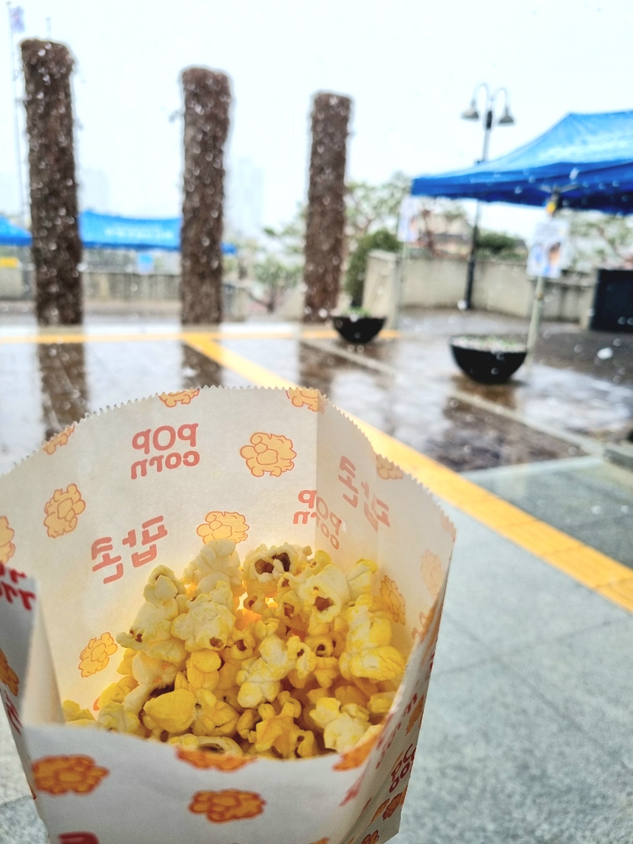 도서관을 나오면서 팝콘은 맛나게 냠냠.
