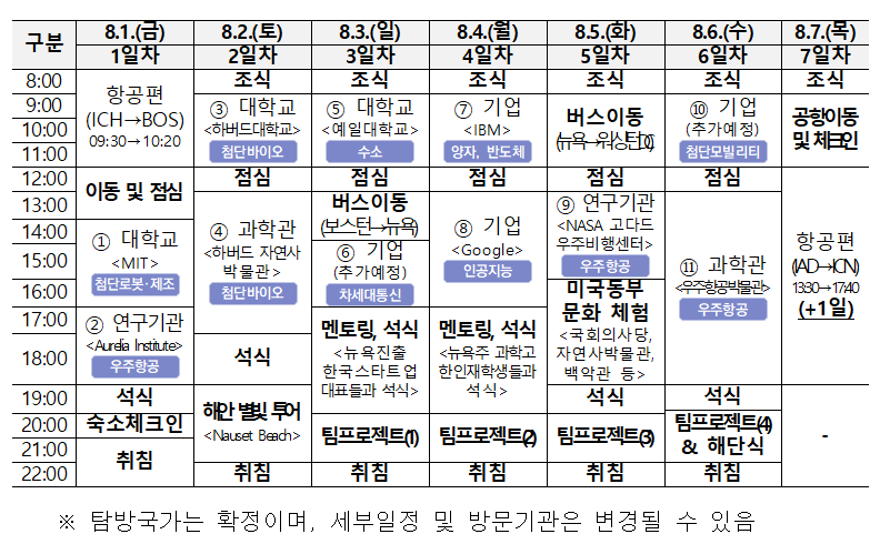 - (운영기간) 2025. 7. 22.(화) ~ 7. 25.(금) / 3박 4일