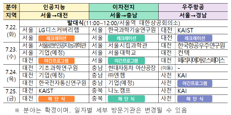 - (주요내용) 분야별 유관 연구시설 및 생산공정 견학, 체험 프로그램 등