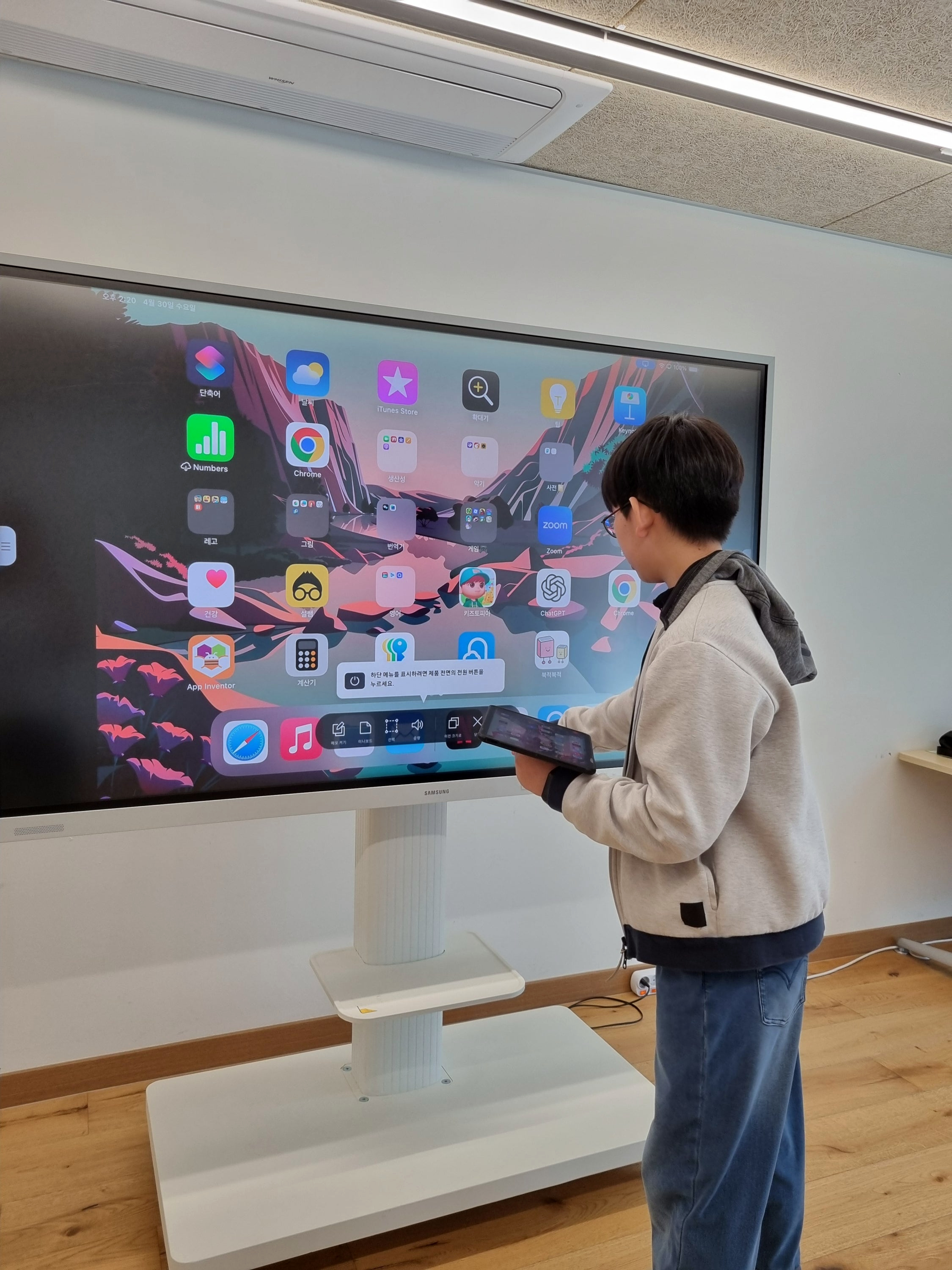 전자 칠판에 아이패드 연결도 알아서 척척.