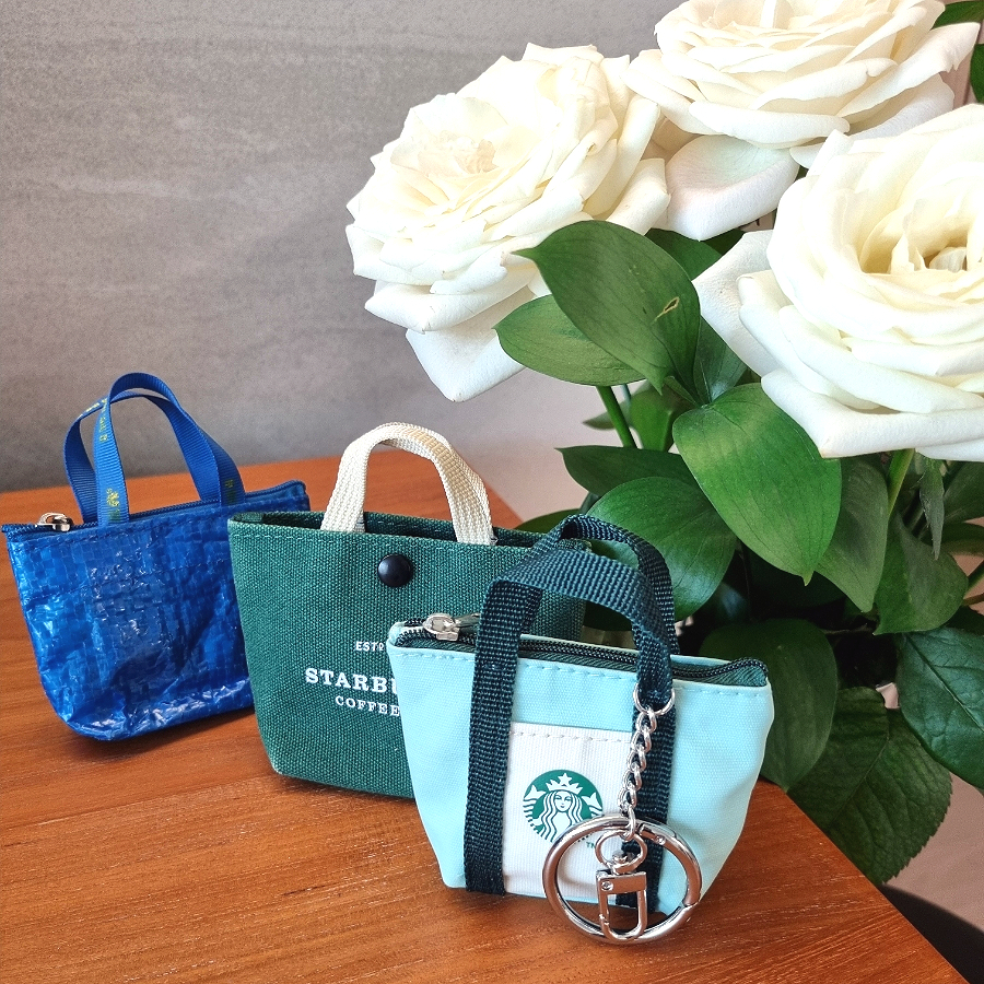 스타벅스 앱의 이벤트 안내를 보고는 이쁘네! 하고 넘겼는데, 수영 끝나고 가는 길에 스벅이 있었고... 기프티콘도 2개 있길래... 원두랑 같이 구매하고 증정용 키링 겟!!! 미니백 키링들 단체샷! 신상이 젤 이쁘긴 하다. ^^ [ Starbucks Happy Thanks Day! ] DT 매장에서 제공되는 베어리스타 파우치 키링도 귀엽지만 일반 매장으로 갔으니 미니백 파우치 키링으로 받았다. 로고는 앞에만. 색 조합도 상큼하니 이쁨. 24 LSM 미니백 키링 95(W)X70(H)X40(D) 핸들 제외로 사이즈는 명시되어 있다. [ Starbucks Lovely Mini Bag ] 2021년 화이트데이에 하트 젤리가 귀엽게 들어가 있던 러블리 하트 젤리 미니백 그린을 샀었다. 작지만....